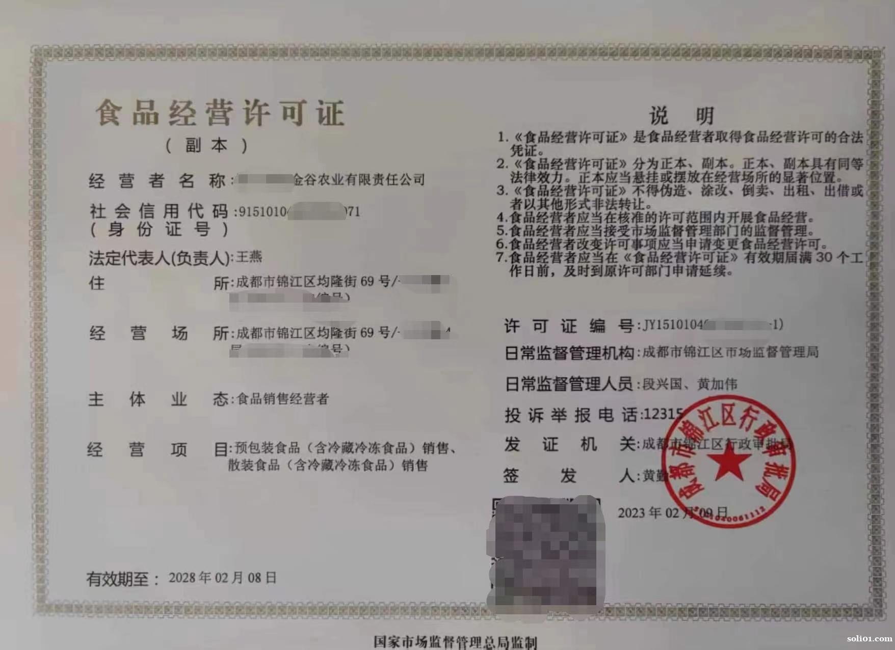 注意事项成都市青白江区行政审批局食品经营许可证;