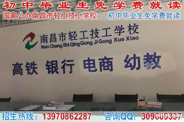 (公办)南昌市轻工技工学校免学费招收初中毕业生就读;有3+3大专、3年技校;开设:幼儿教育、计算机应用、电子商务、银行定向就业班、高铁定向就业班、航空服务就业班、大数据应用、机床切削加工等热门专业;学校实行技校+升学大学联合培养,实行1+X证书考证培养;校址:南昌市青山湖区师大南路54号;市内乘7路、13路、220路、231号公交至江西师大站下,地铁1号线到师大南路4号口出站;公办学校,免学费就读。